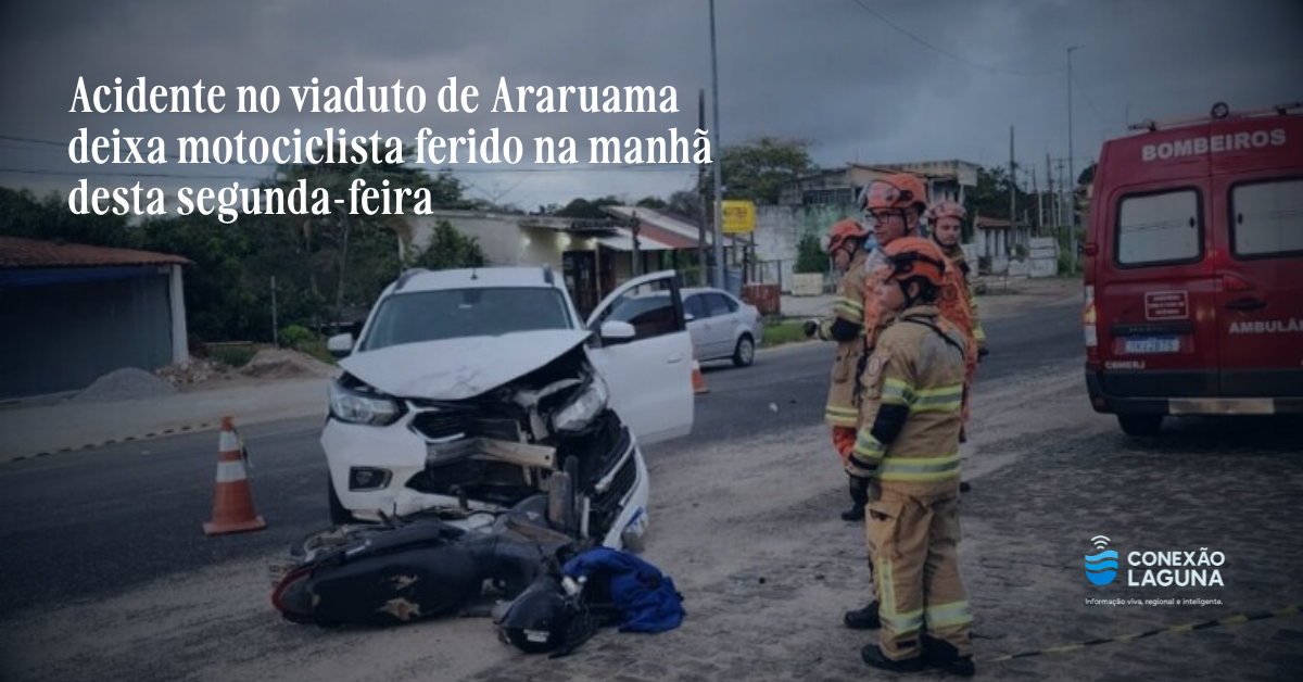 Araruama (RJ), 1º de setembro de 2025 — Um acidente envolvendo uma motocicleta e um carro foi registrado na manhã desta segunda-feira, por volta das 6h30, no viaduto de Araruama, causando ferimentos ao motociclista e gerando lentidão no trânsito local.